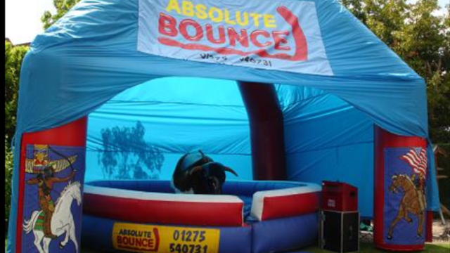 Absolute Bounce delivers, sets up, and ensures your Rodeo Bull Marquee Cover is ready for action alongside our rodeo bull hire.